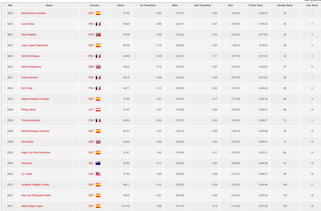 Finalmente paso del 5º a la salida de la natación al 18º de mi grupo de Edad y contento, muy contento.