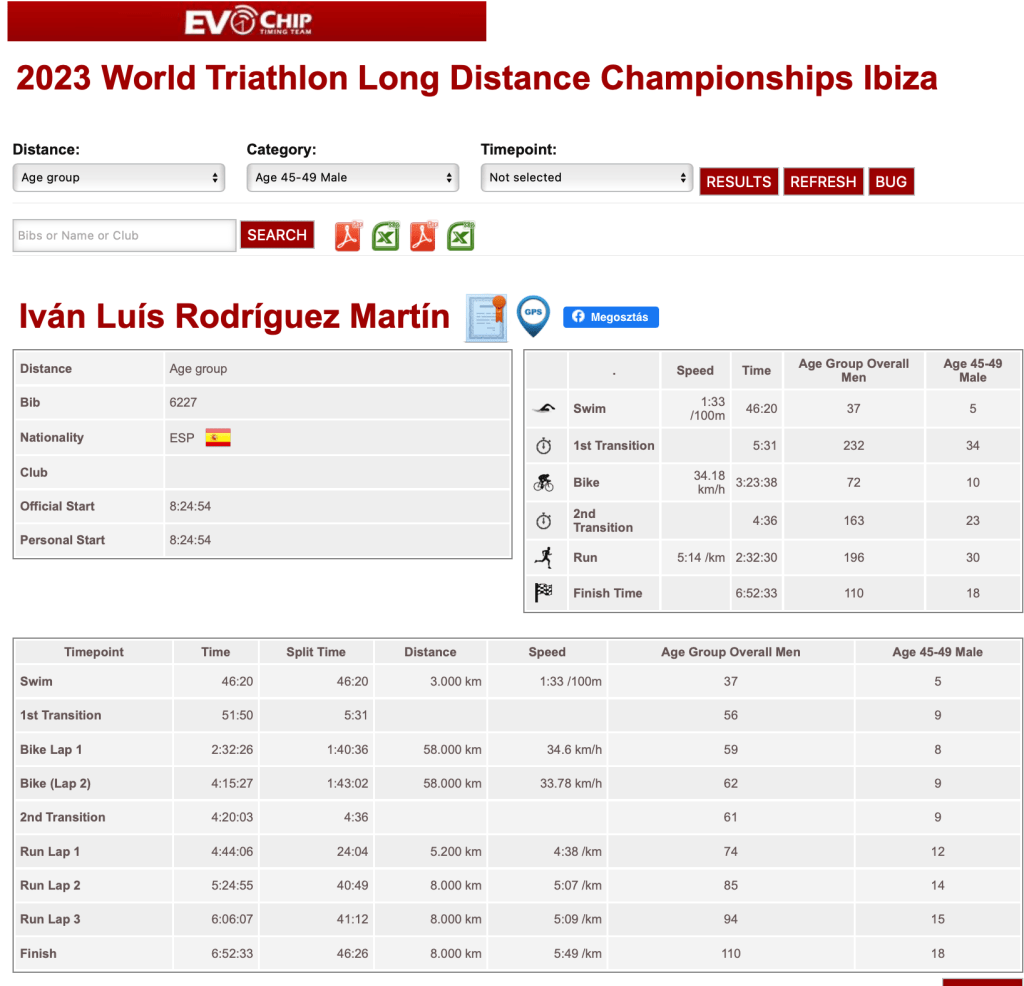 Para llegar aquí primero hay que solicitar a la Federación Nacional una plaza de las 20 que tenía asignadas por la ITU para mi grupo de edad 45-49 años. Finalmente en Marzo me confirman que consigo una de esas plazas y aunque ya era un poco tarde pues ya tenía los deberes hechos porque decidí que consiguiera o no la plaza, iría al Ironman de Lanzarote de mediados de Mayo por lo que nunca había parado de entrenarme desde Septiembre 2022.