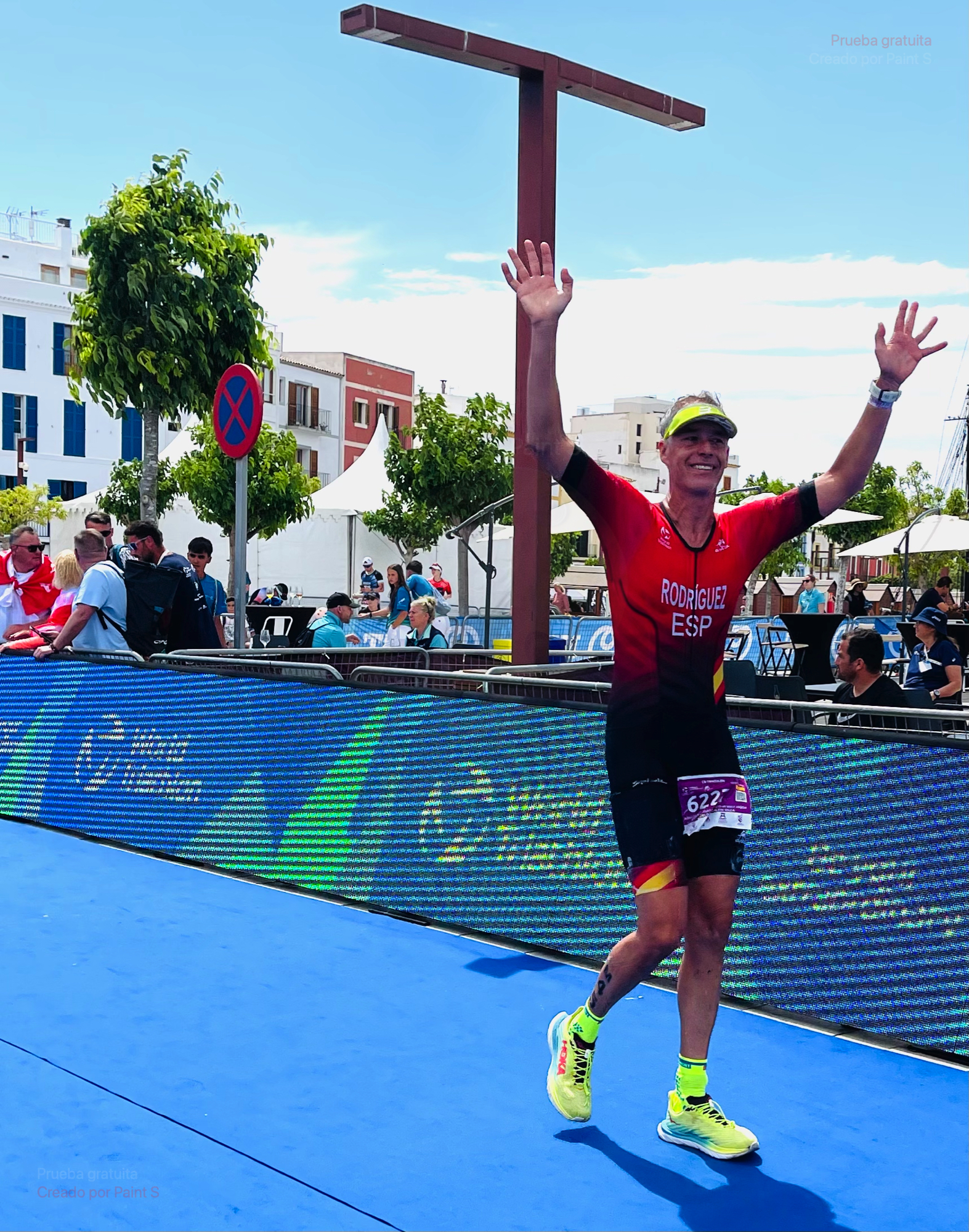 En estos mundiales te da un poco el «Síndrome del Impostor» (ese que le da a los estudiantes cuando han estudiado mucho pero creen, a pocos días del examen, que no se lo saben y van a suspender), en mi caso el ver tantos países con sus uniformes bien arreglados y con los triatletas tan afinados y preparados pues me hizo pensar que estaba fuera de sitio, ¿qué hacía yo en un Mundial?, ¿el de Gran Tarajal en un Mundial?… Brasileños, Qatares, Alemanes, ingleses, Franceses, Americanos, todos hasta 60 países distintos. Para solucionar esto lo que hice fue irme a vivir a casa de mi hermano (Residente en Ibiza) que está lejos de la Capital.